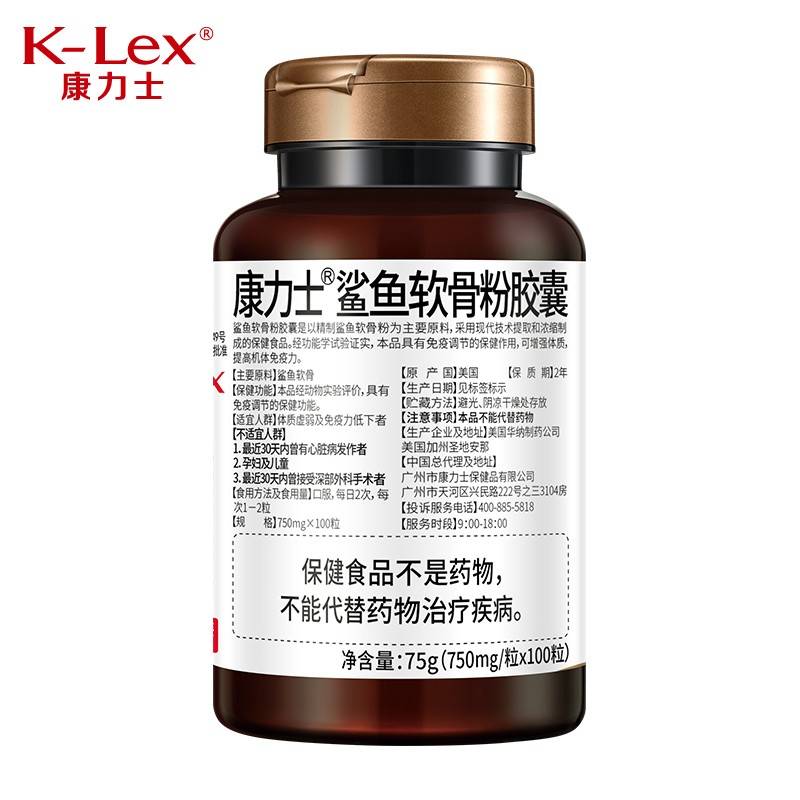 康力士 鲨鱼软骨粉胶囊100粒 呵护骨骼中老年成人关节营养素