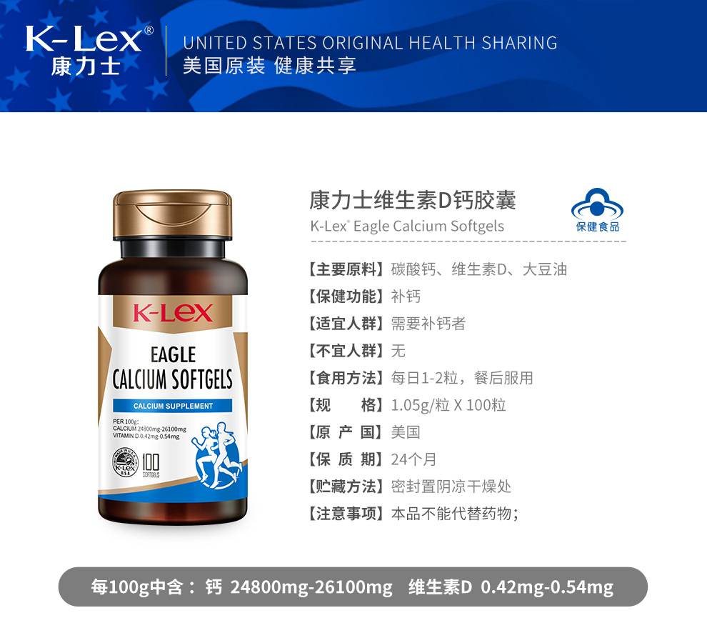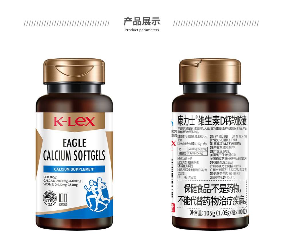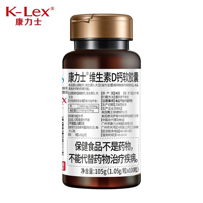 康力士维生素D钙软胶囊液体钙补钙维生素D钙软胶囊100粒