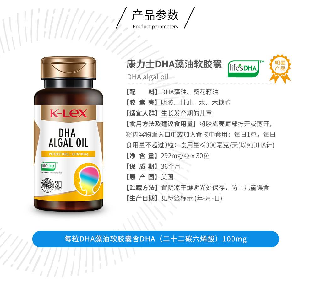康力士DHA藻油软胶囊青少年辅助改善记忆力(儿童型)30粒