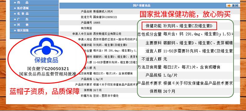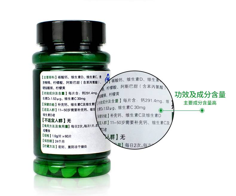 斯强牌成人钙片 1.0g/片*60片 中老年补钙维生素C D