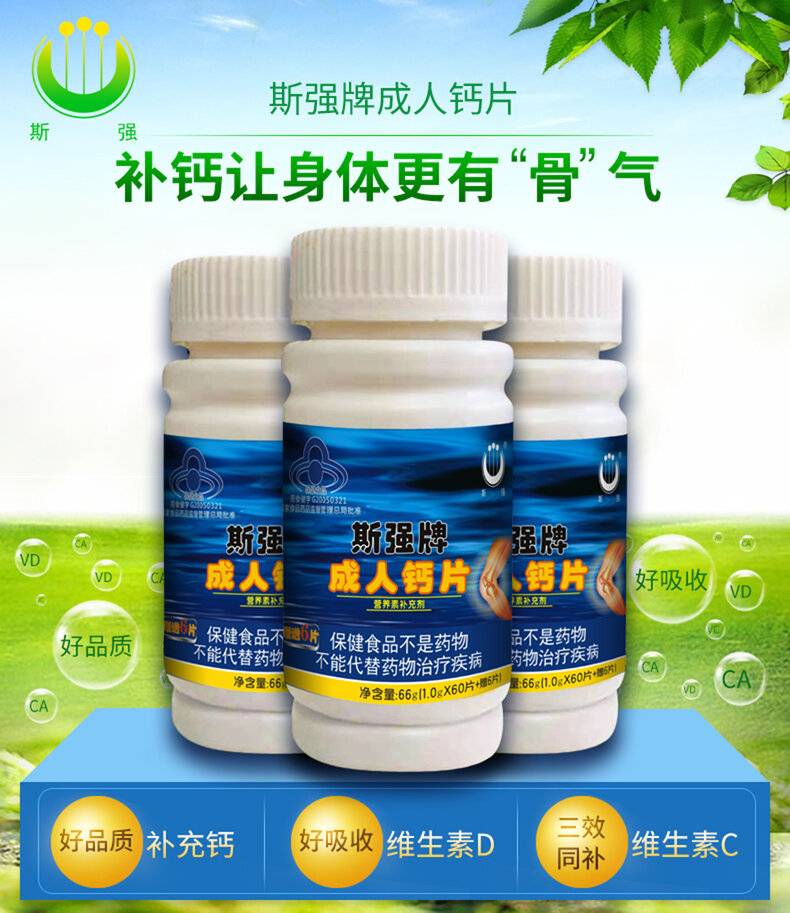 斯强牌成人中老年钙片科学补钙好吸收富含维生素D+维生素C