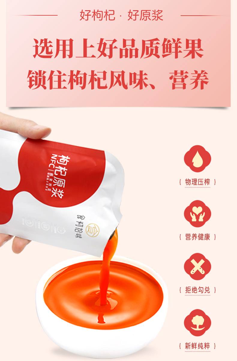 食初拾味 枸杞原浆宁夏中宁头茬枸杞鲜果榨汁 50ml*10袋