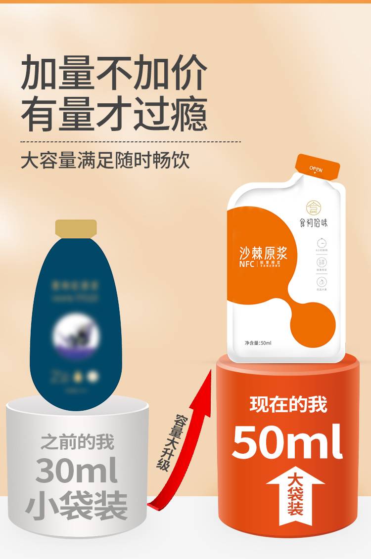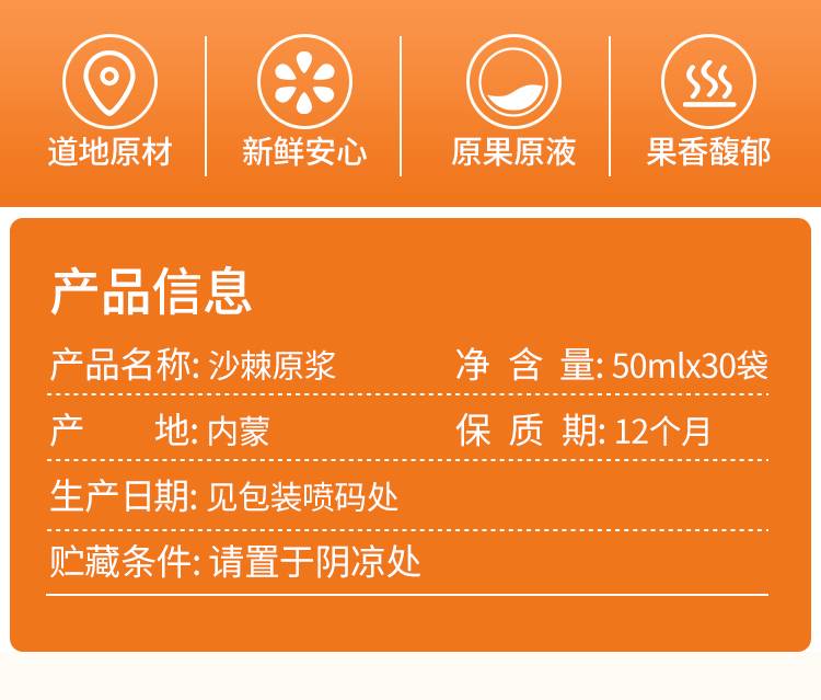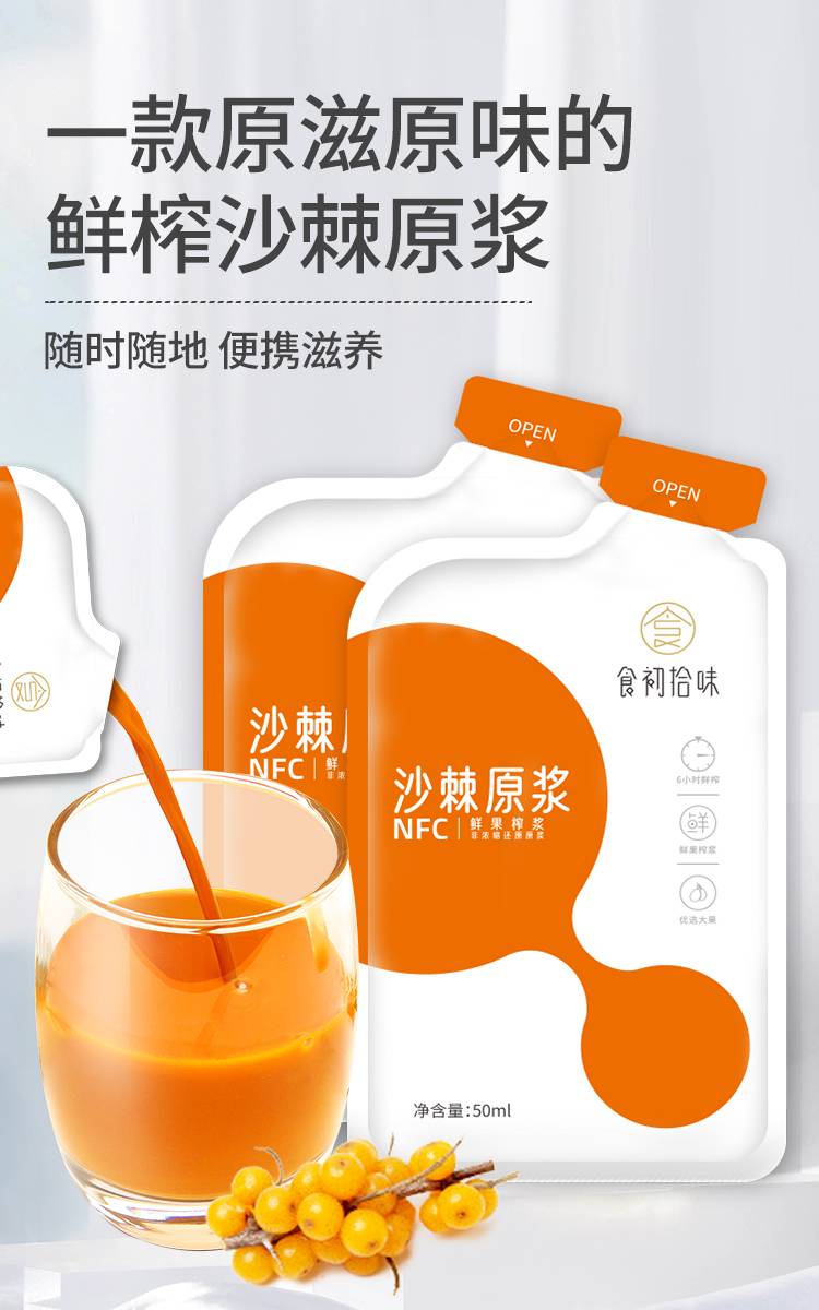食初拾味 鲜沙棘原浆 生榨纯沙棘原浆 50ml*10瓶