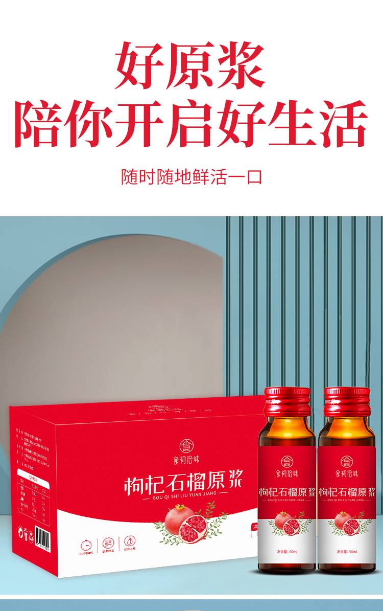 食初拾味 枸杞石榴原浆 宁夏鲜原浆汁 50ml*10瓶