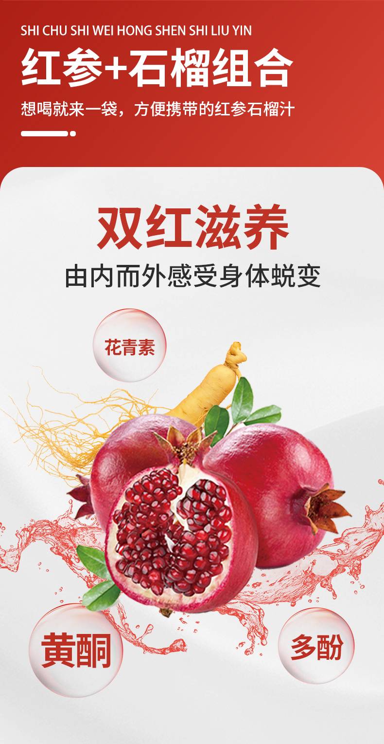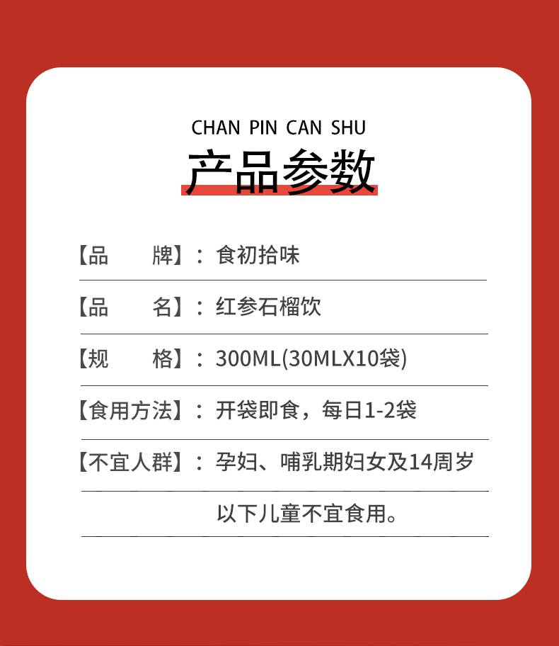 食初拾味红参石榴饮 30ml*10袋正宗红参新鲜石榴营养双倍