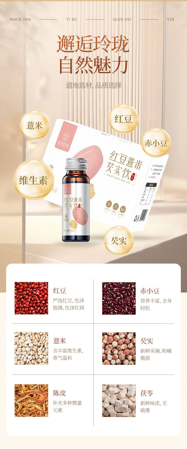 食初拾味 红豆薏米芡实饮50ml*10瓶