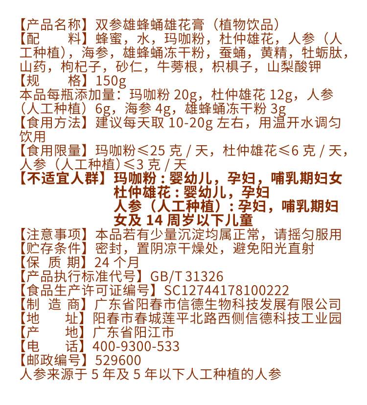 兆尹堂-双参雄蜂蛹雄花膏(植物饮品) 150g