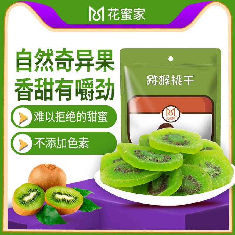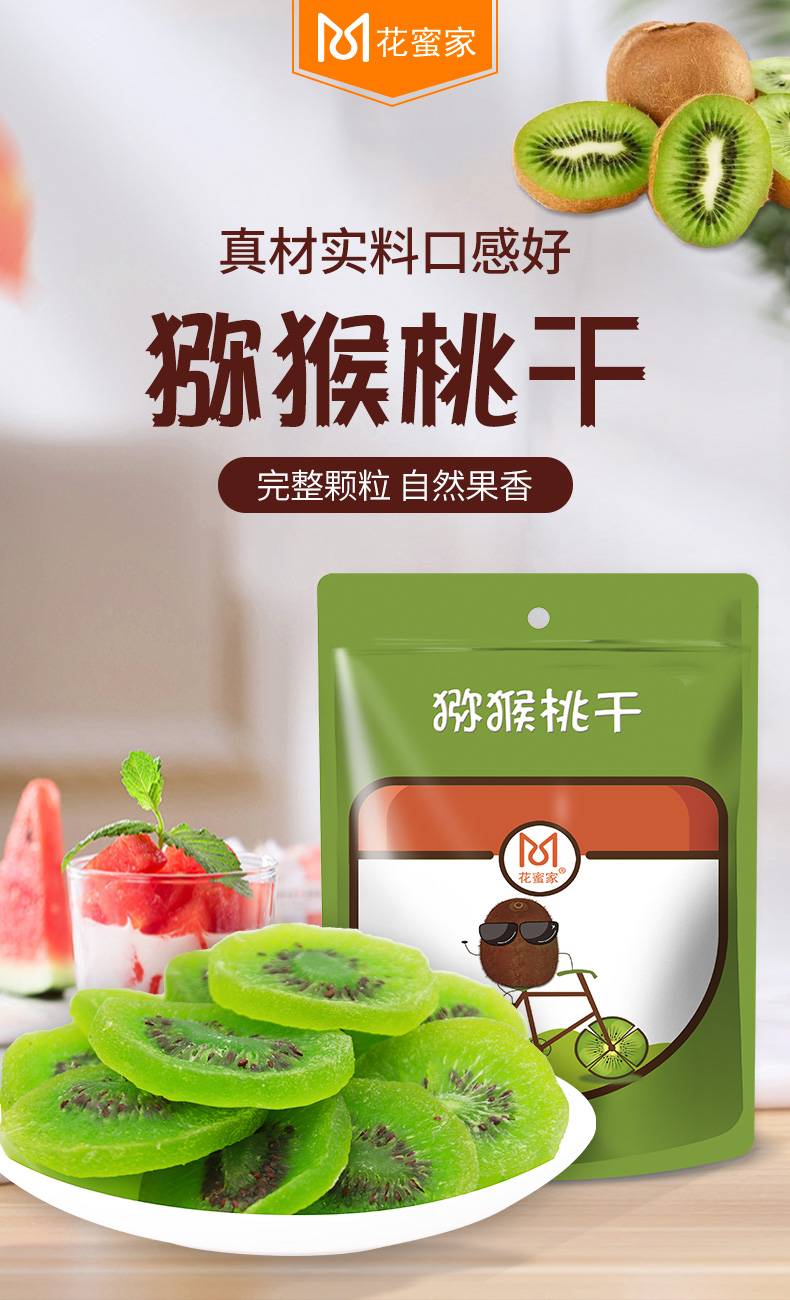 花蜜家猕猴桃干奇异果干片弥猴桃水果干脯蜜饯零食108gx3袋
