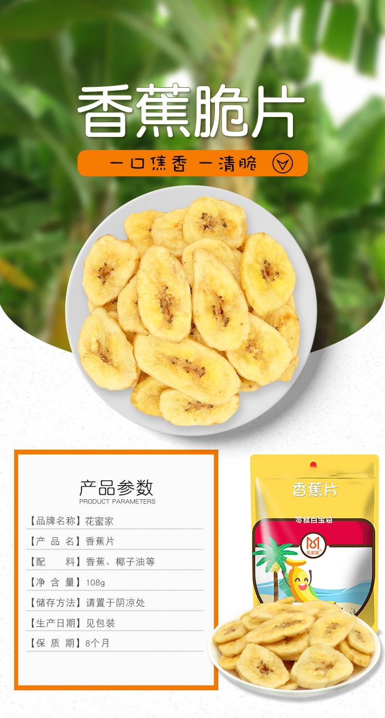 花蜜家休闲食品每日坚果特产干果零食小吃 香蕉片108g*3袋