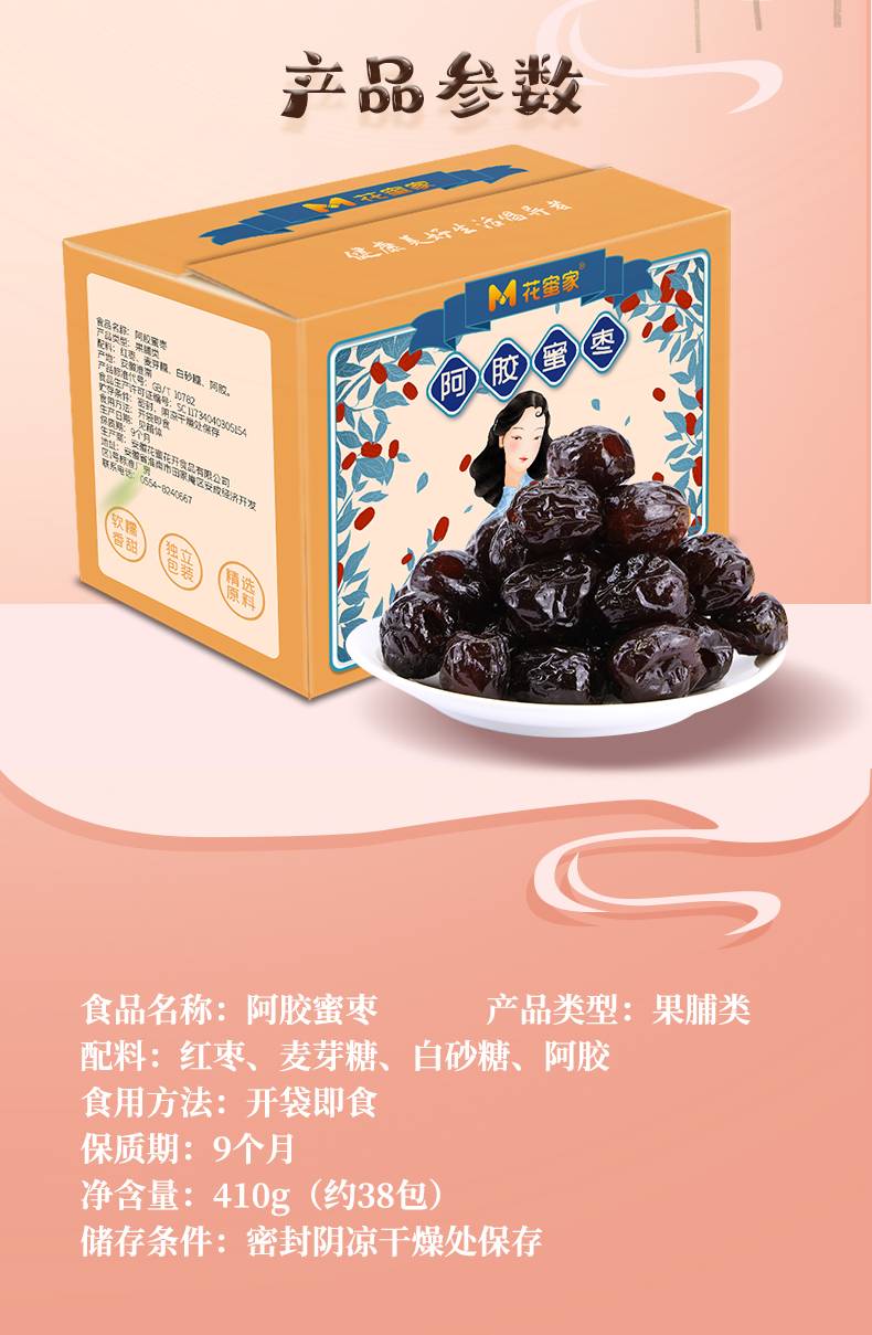 花蜜家阿胶枣小包装无核即食蜜枣一整箱410g(38小袋)