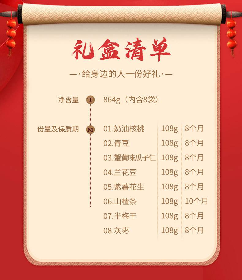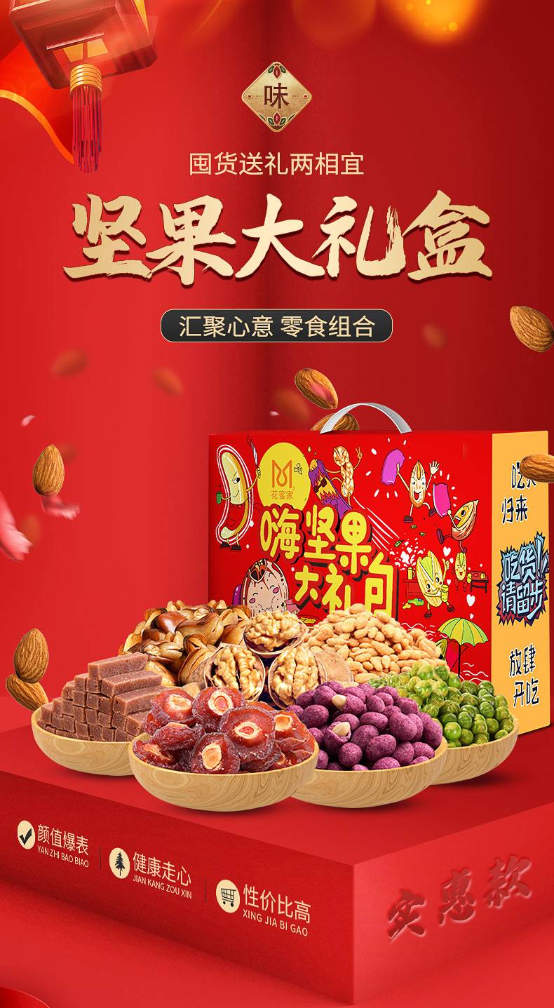 花蜜家实惠款嗨坚果礼盒 年货坚果礼盒 864克/盒
