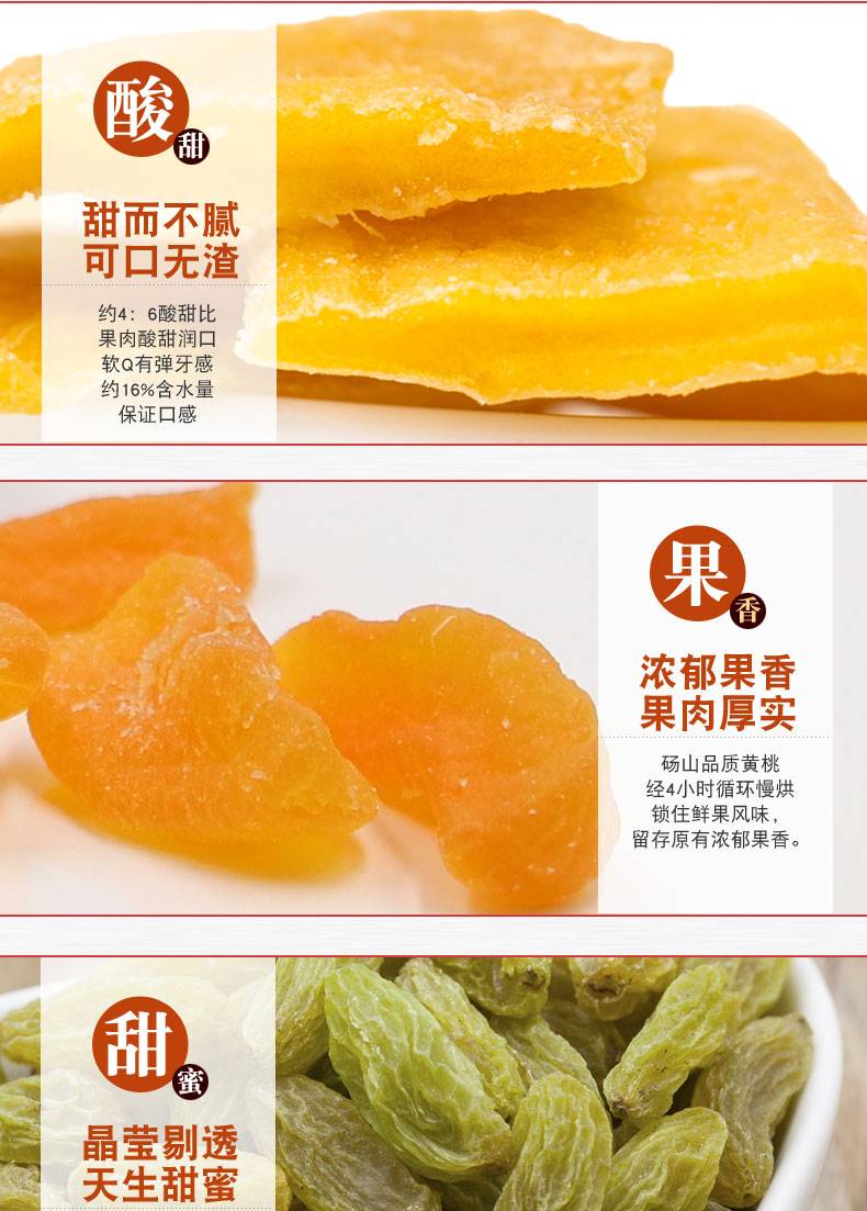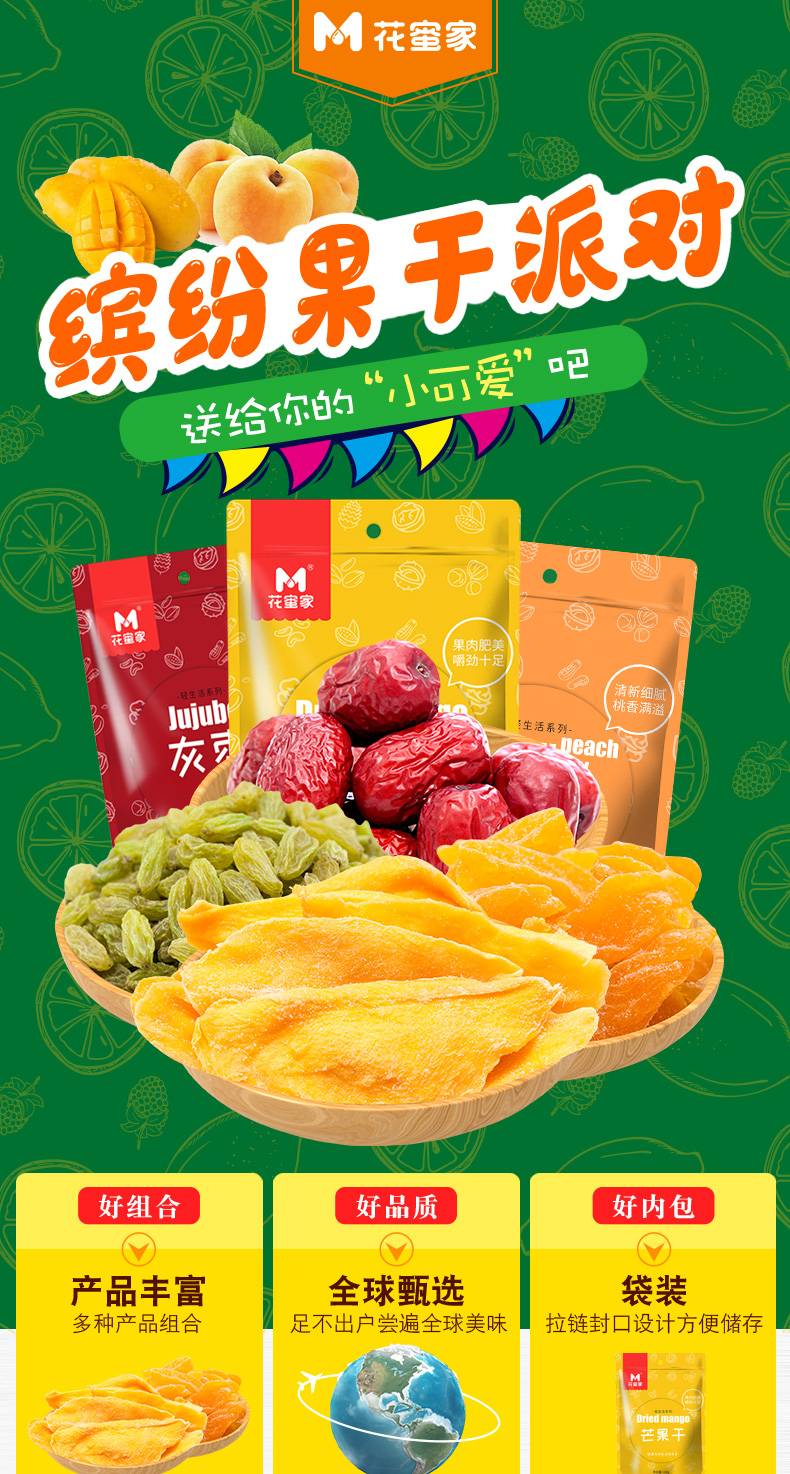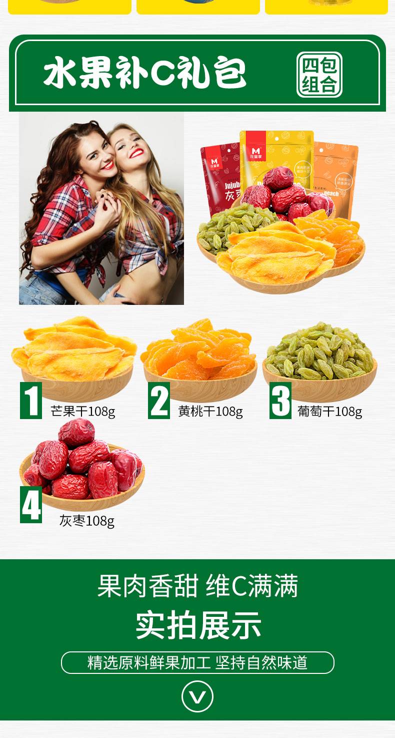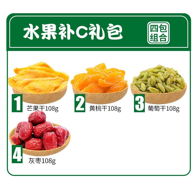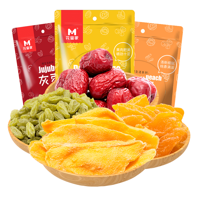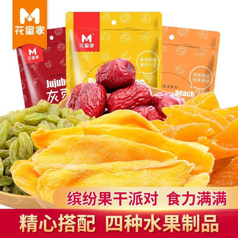 花蜜家水果补C套餐 4袋 芒果干/黄桃干/葡萄干/灰枣