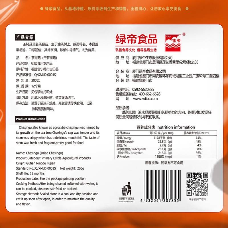 绿帝 山珍干货 菌菇 茶树菇200g