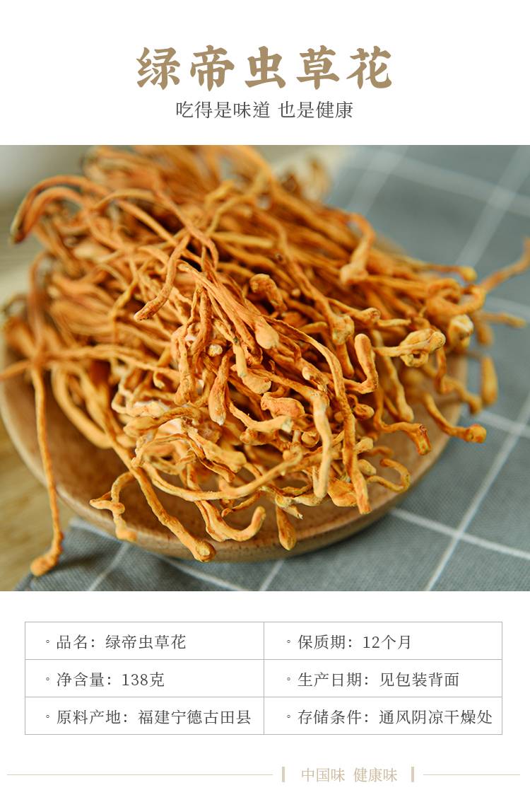绿帝 山珍干货 蛹虫草 虫草花138g