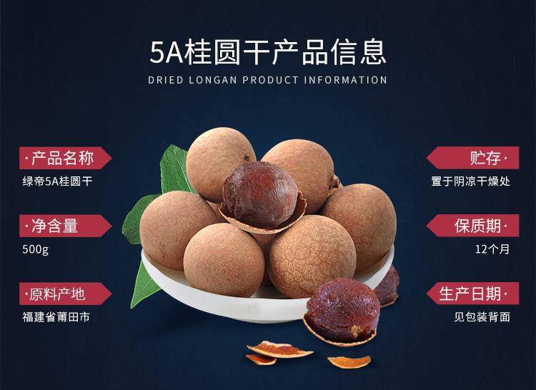 绿帝5A大个桂圆干福建龙眼干 干货特产500g