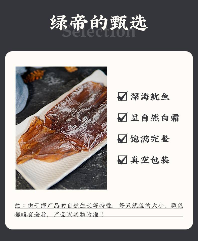 绿帝 鱿鱼干 淡晒 海鲜干货 浙江舟山 干鱿鱼300g