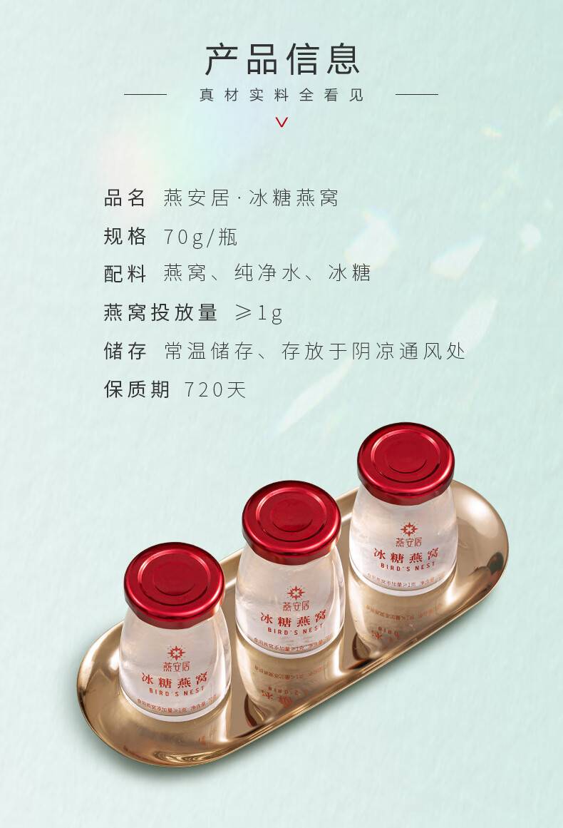 燕安居 即食冰糖燕窝70g*6瓶 孕妇女性月子老人滋补品