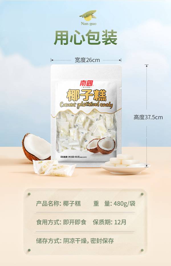 南国 海南特产椰子软糖 椰子糕480g/盒 婚庆糖果礼盒