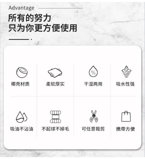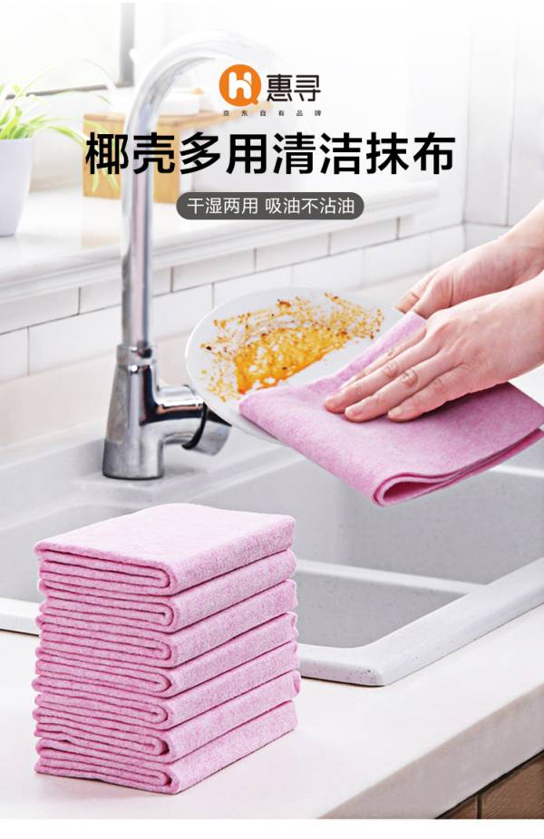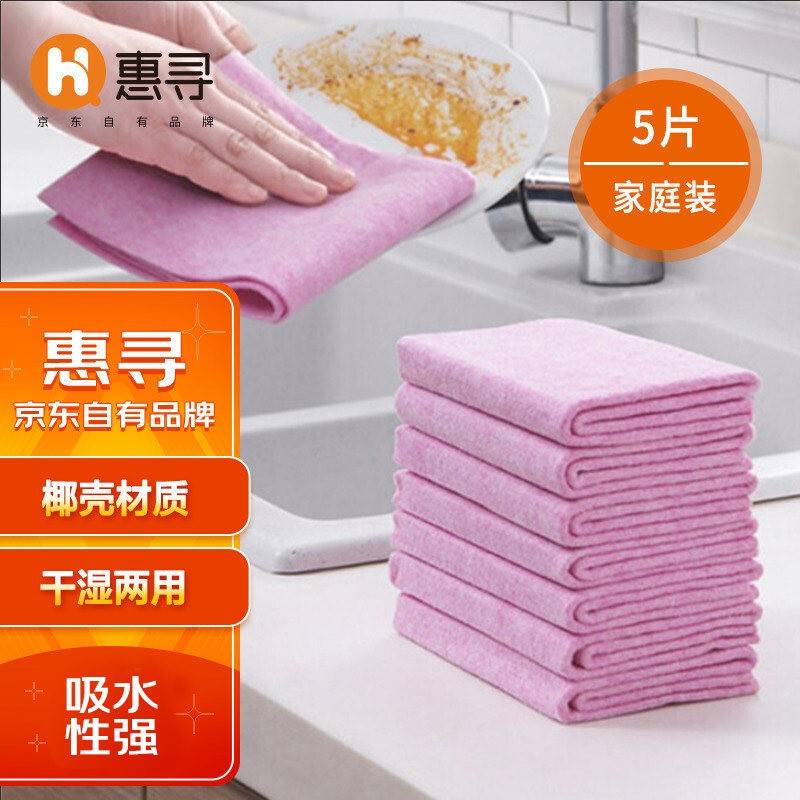 惠寻 椰壳抹布5条 厨房加厚百洁布擦手巾毛巾去油污干湿两用