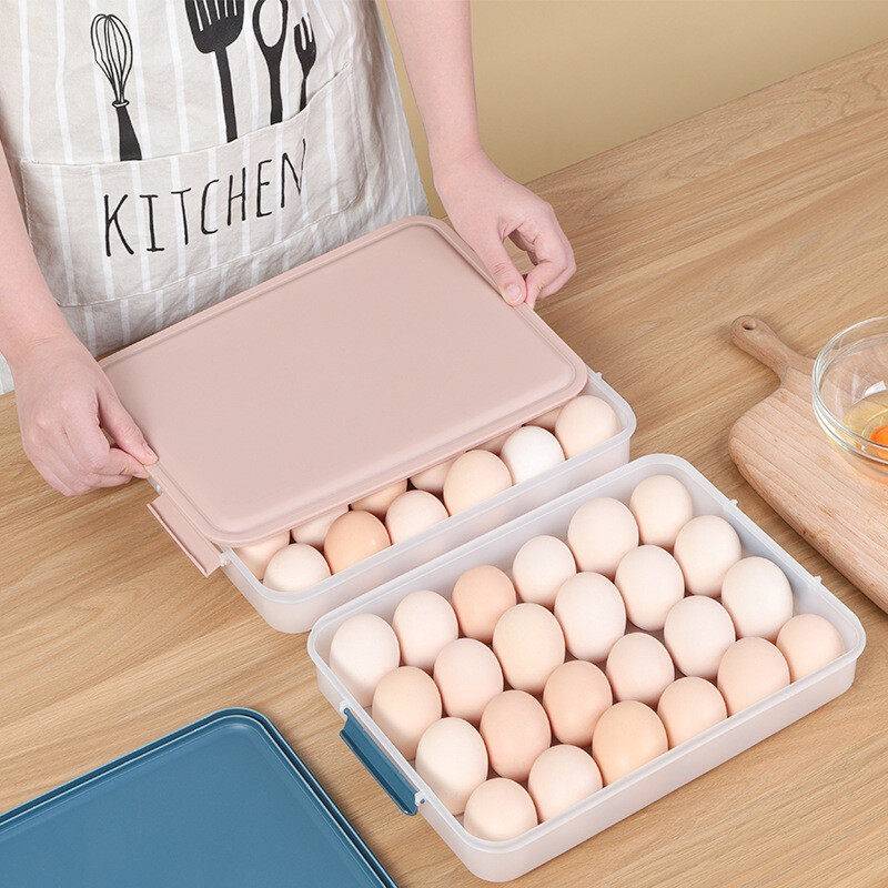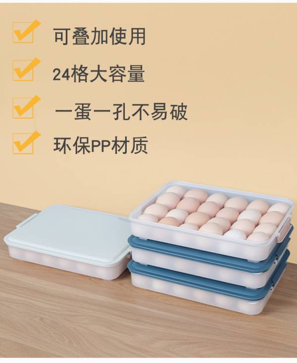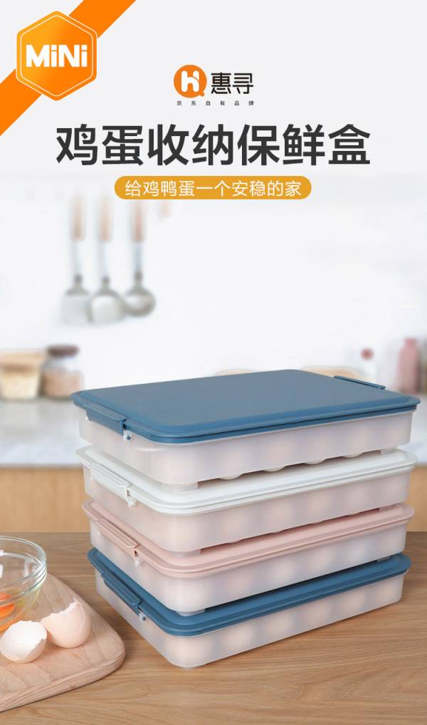 惠寻 冰箱带盖鸡蛋盒鸡蛋保鲜盒24格收纳盒 随机色