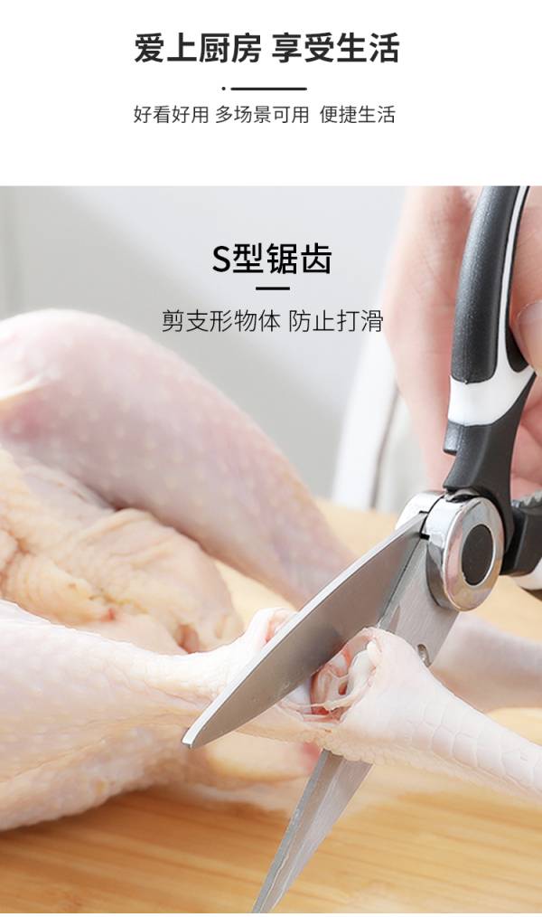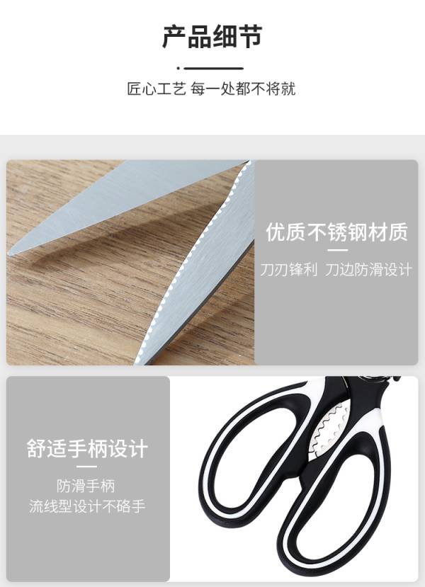 惠寻 多功能厨房剪刀大号不锈钢强力鸡骨剪家用剪肉杀鱼食物剪