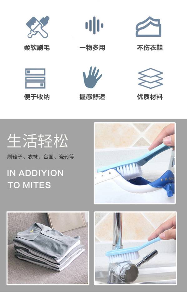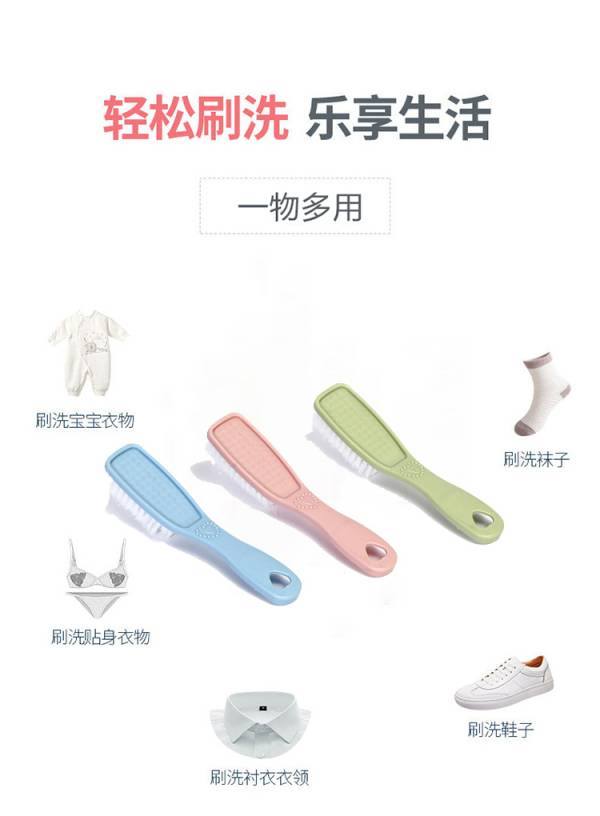 惠寻 多功能刷子3把 鞋刷洗衣刷毛刷清洁刷具颜色随机