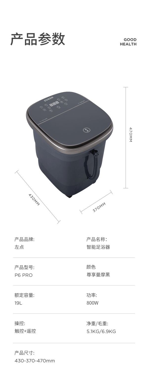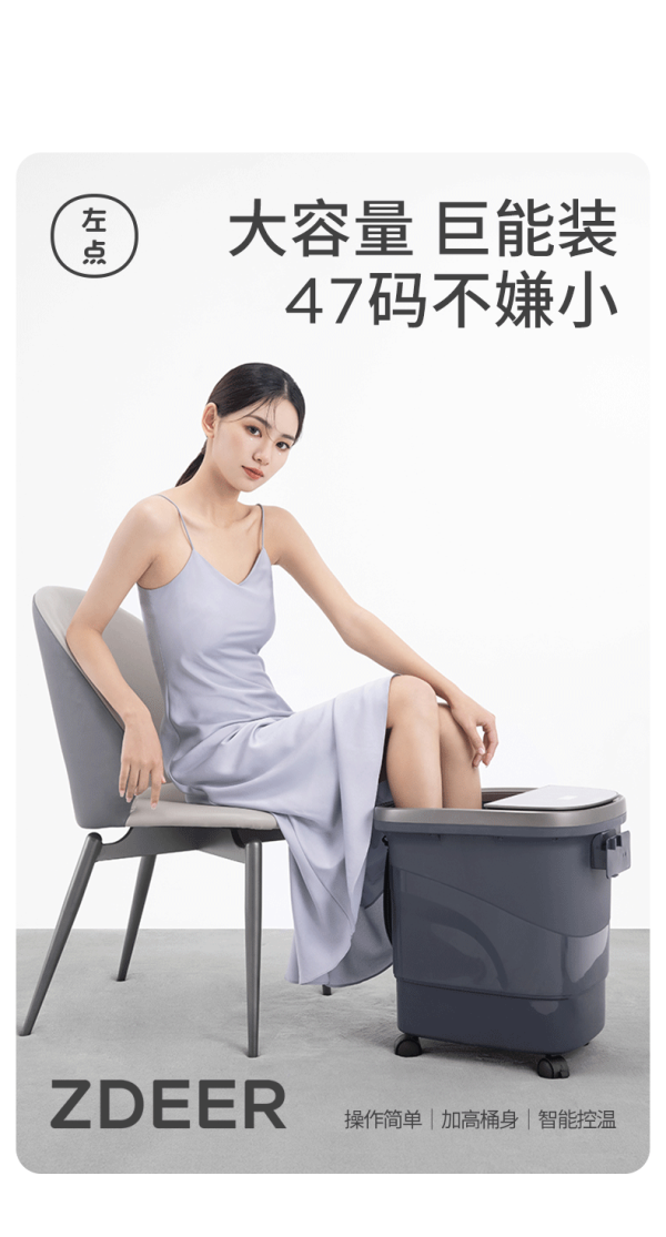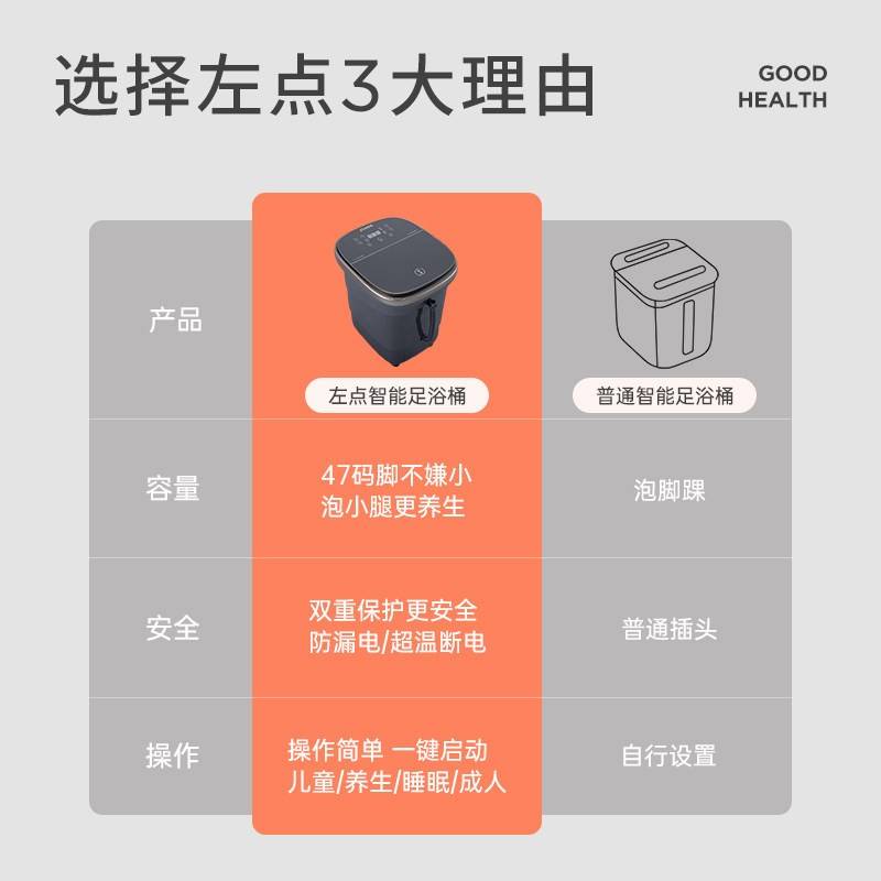左点泡脚桶智能电动按摩足浴盆全自动足浴器恒温防漏电洗脚盆