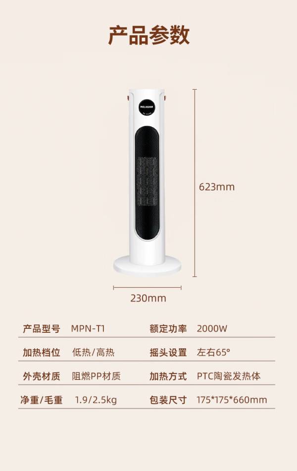 美菱(MeiLing)家用取暖器暖风机陶瓷速热低噪运行电暖风
