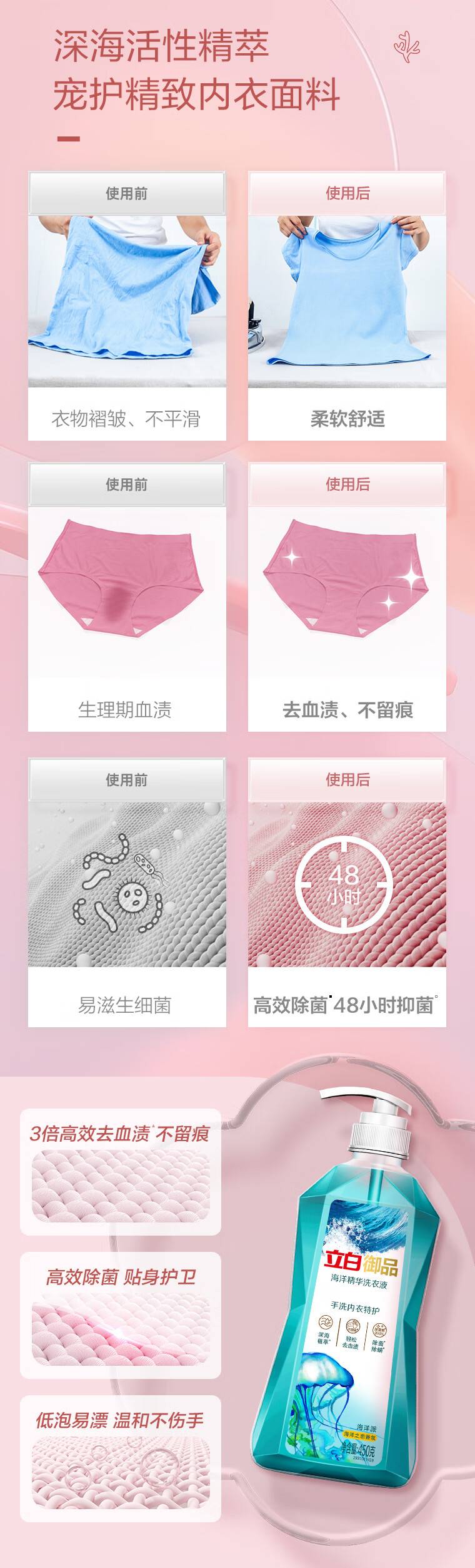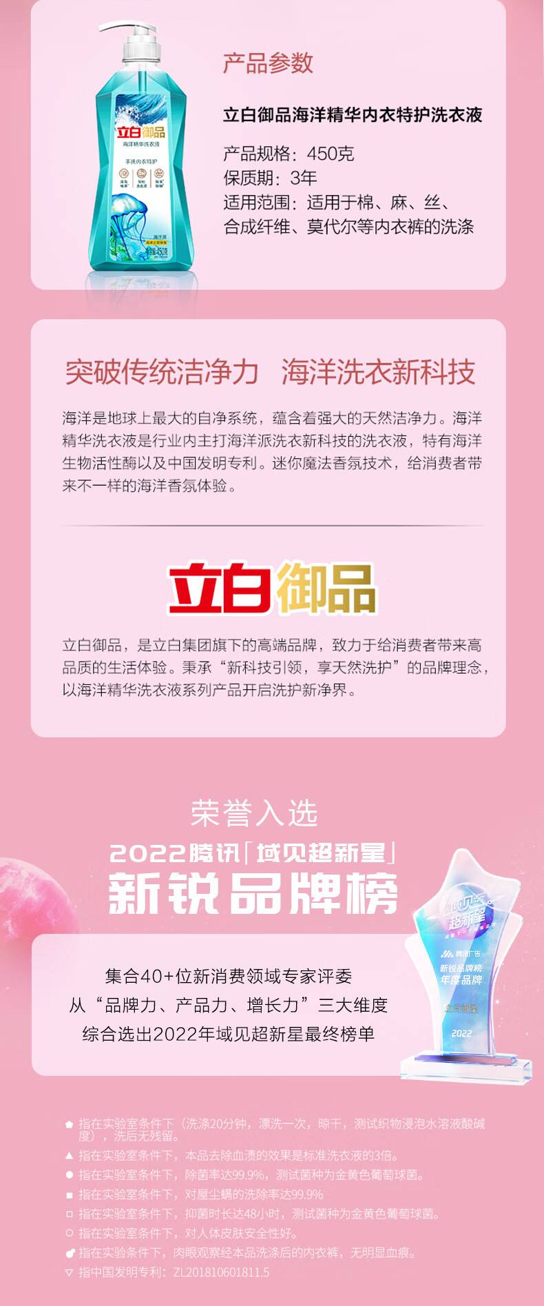 立白御品内衣洗衣液 除螨抑菌 留香去血渍 内裤适用 450g