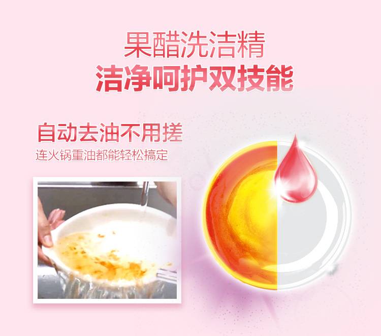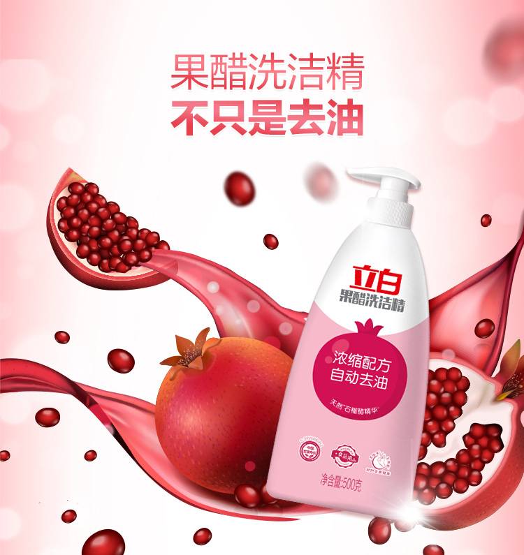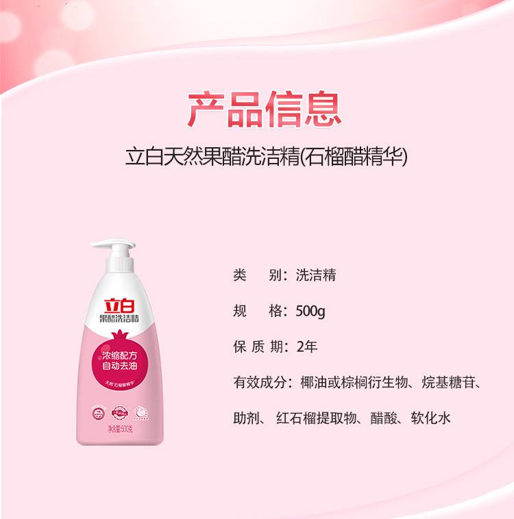 立白 果醋洗洁精500g浓缩洗涤精石榴醋精华去除果蔬农残