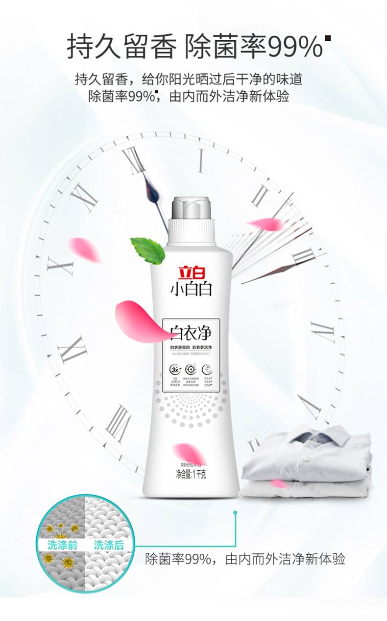 立白小白白白衣净洗衣液1kg衣领去黄除菌率99%天然精华