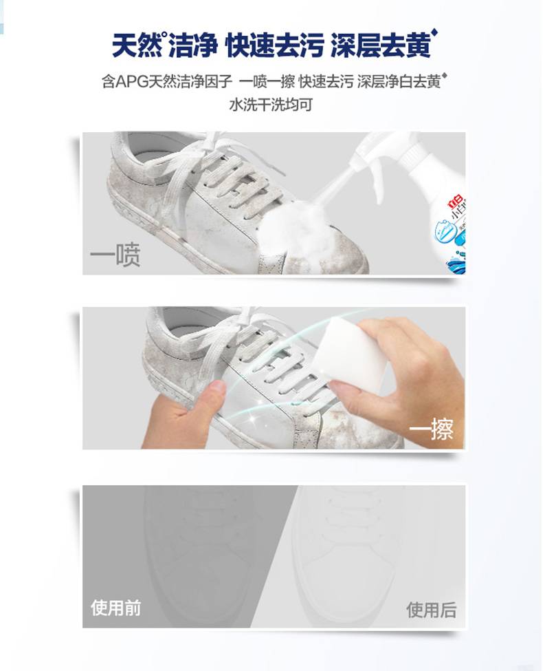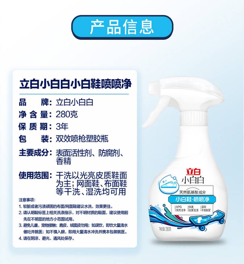 立白小白白 小白鞋喷喷净280g 天然洁净 快速去污