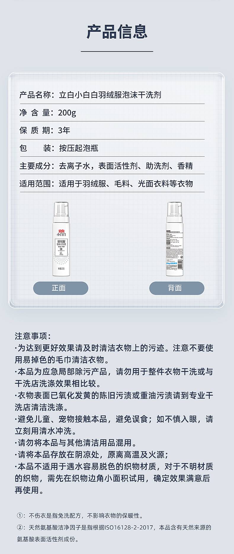 立白小白白羽绒服泡沫干洗剂200g免水洗喷雾清洁剂袖口