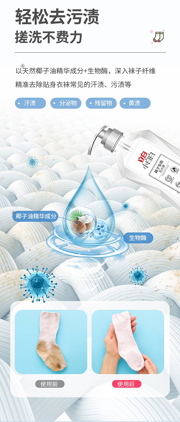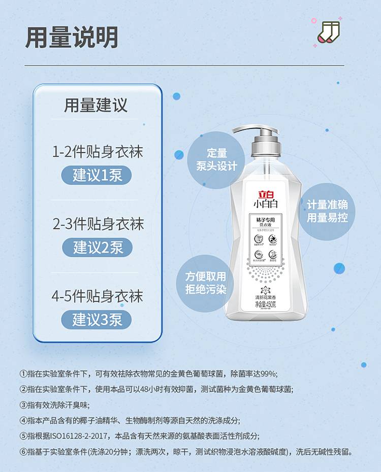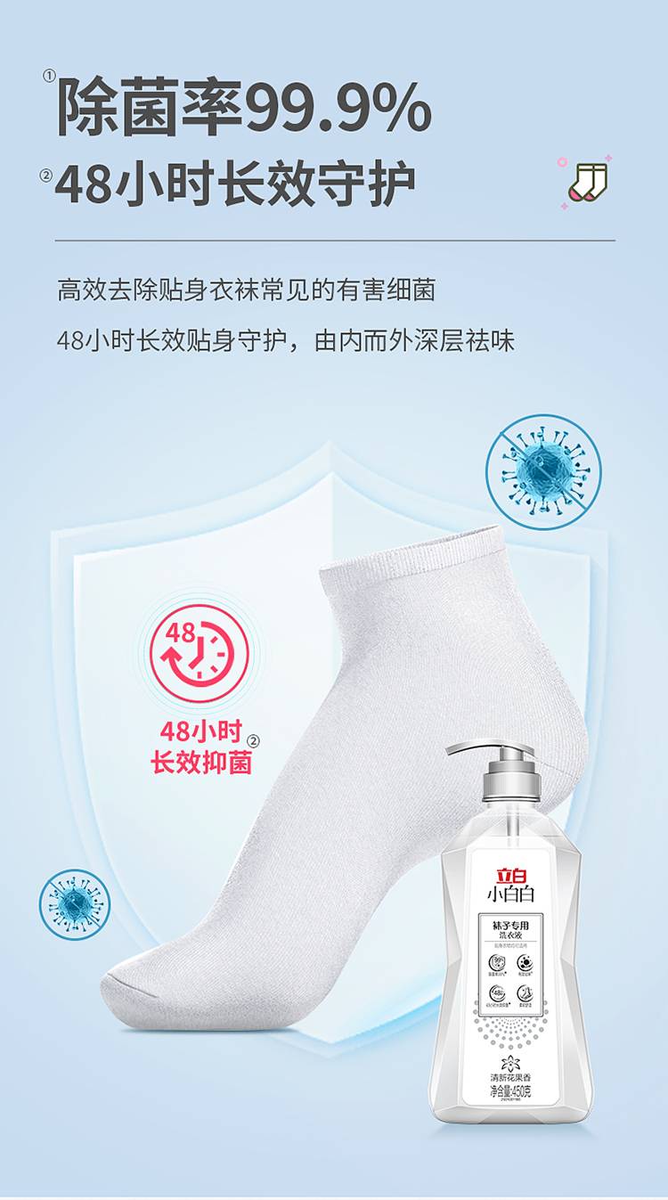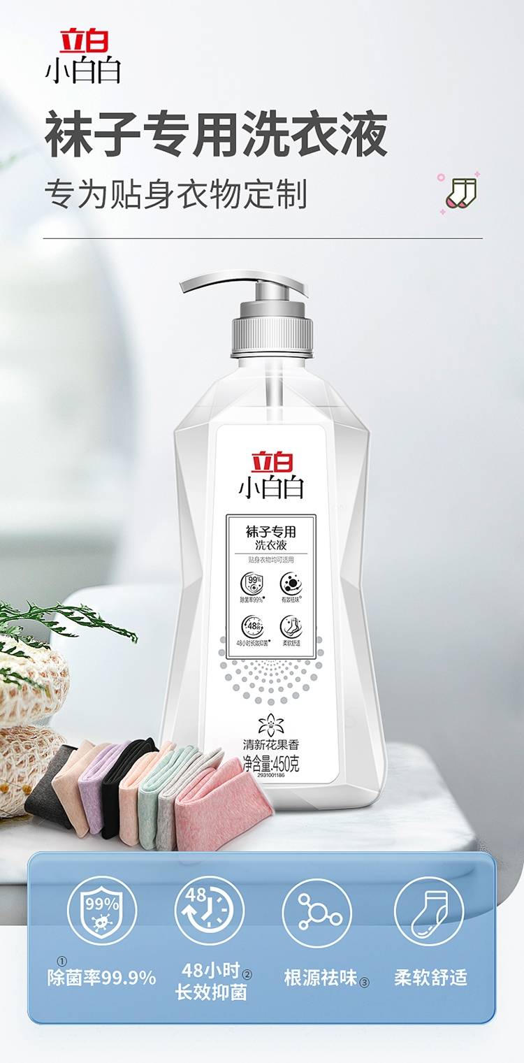 立白小白白袜子专用洗衣液450g除菌抑菌洗袜液袜子洗涤液