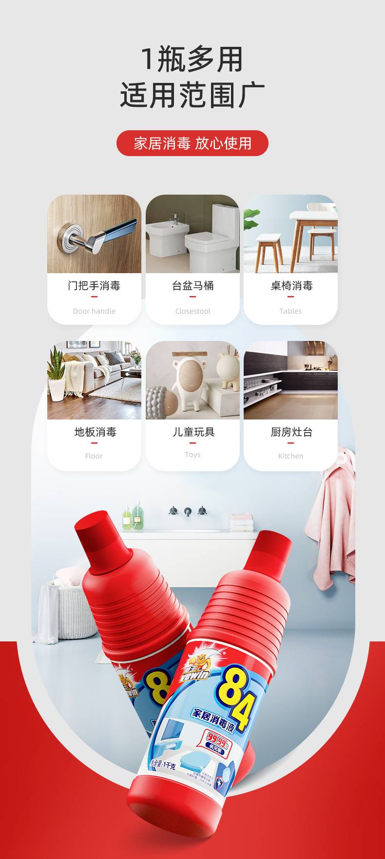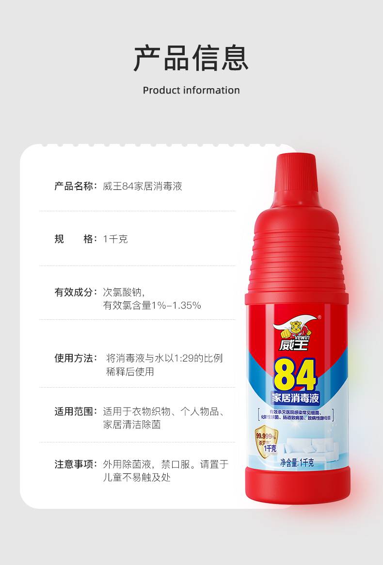 威王(vewin)威王84消毒液消毒水家居消毒液1千克*2瓶