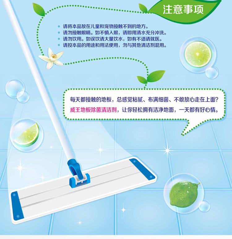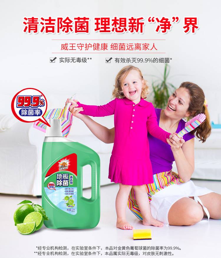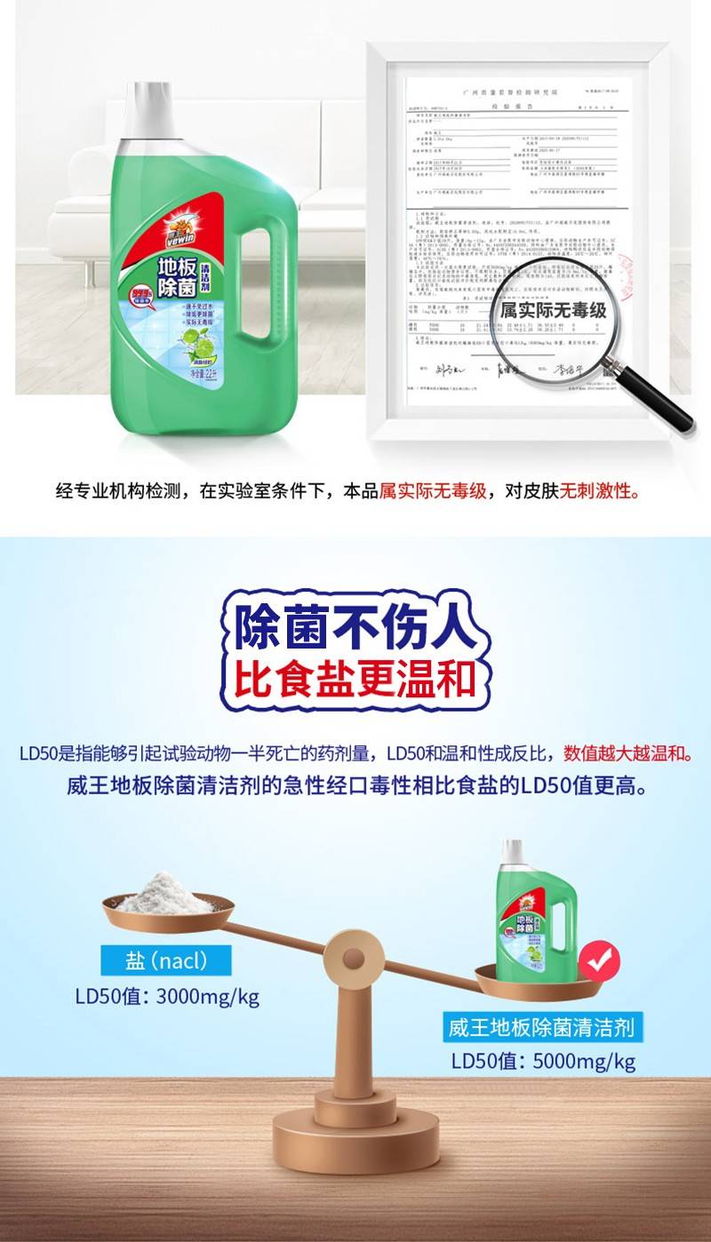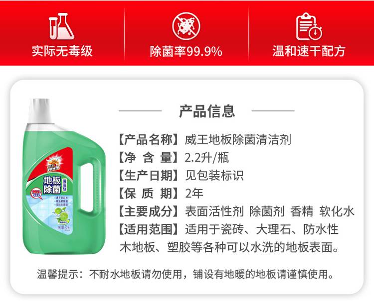 威王 地板除菌清洁剂2.2L 柠檬香不刺鼻 去污除菌
