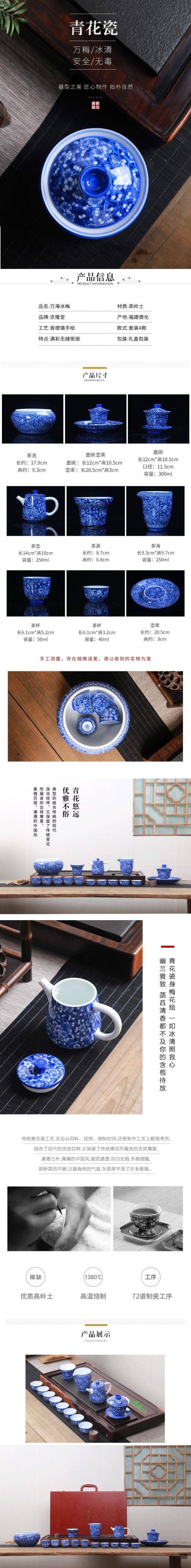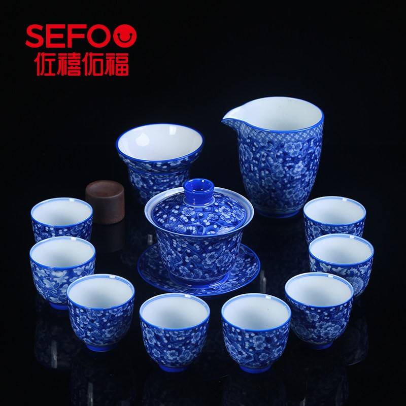 青花瓷功夫茶具整套家用手绘陶瓷盖碗茶杯泡茶壶套装礼盒