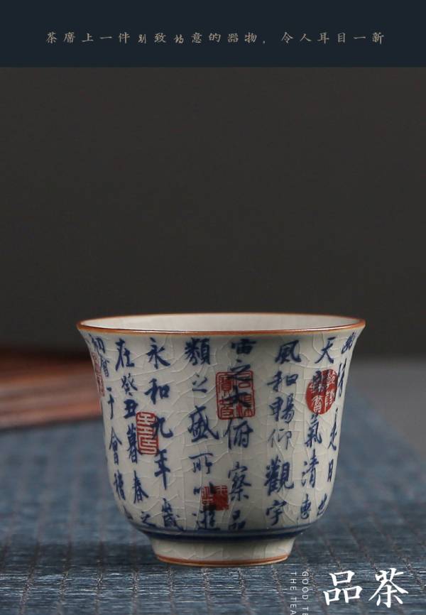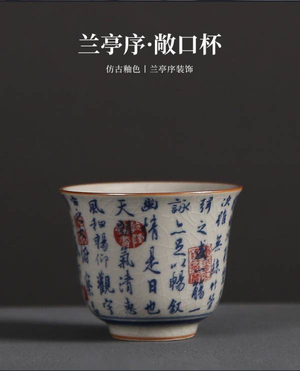 兰亭序茶杯个人专用主人杯家用中式陶瓷功夫茶具品茗杯单杯冰裂釉