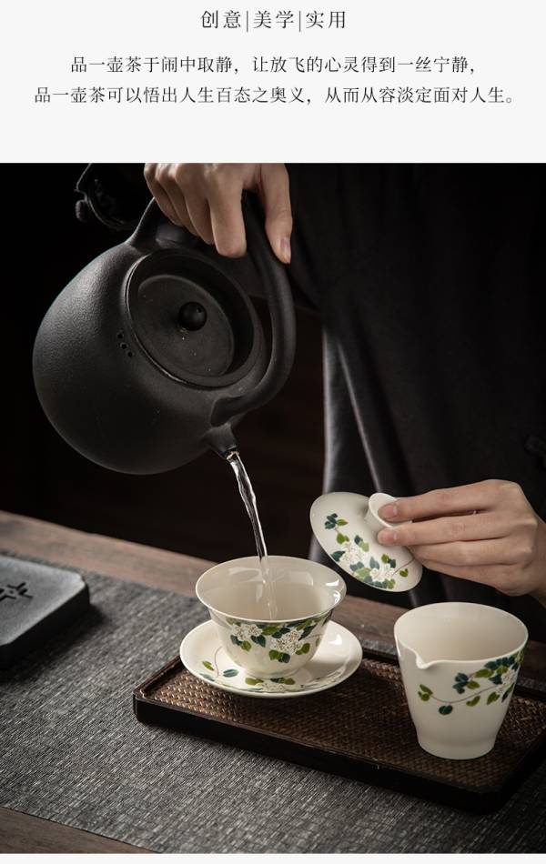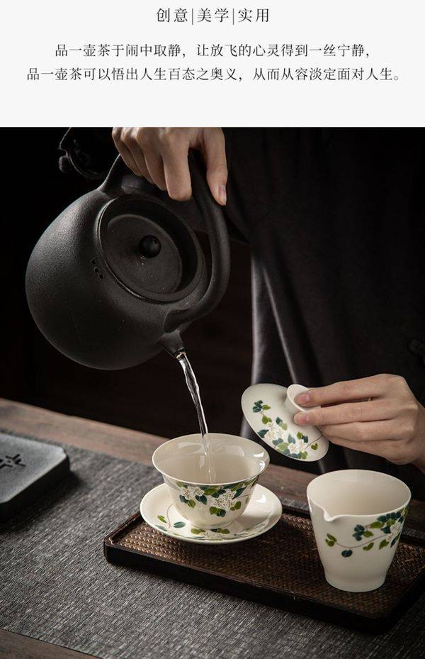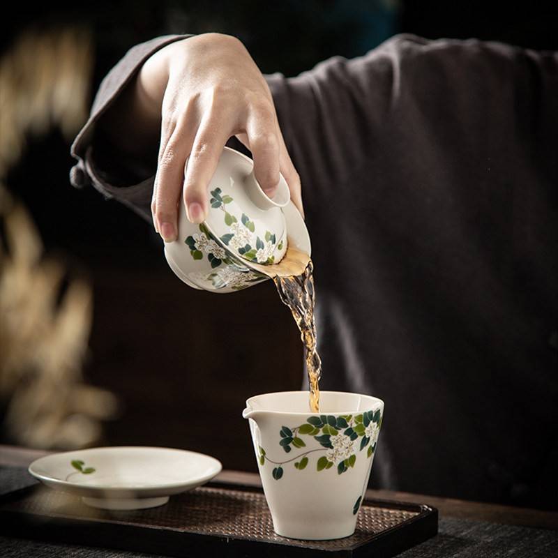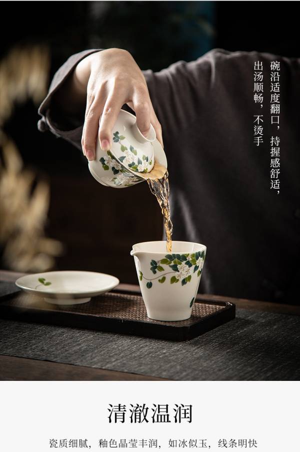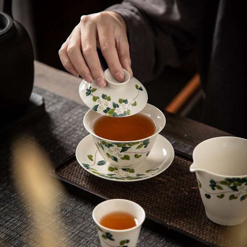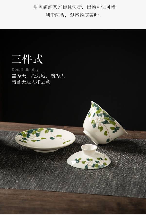 陶瓷三才盖碗大号功夫茶具套装家用山茶花泡茶杯单个不烫手敬茶碗