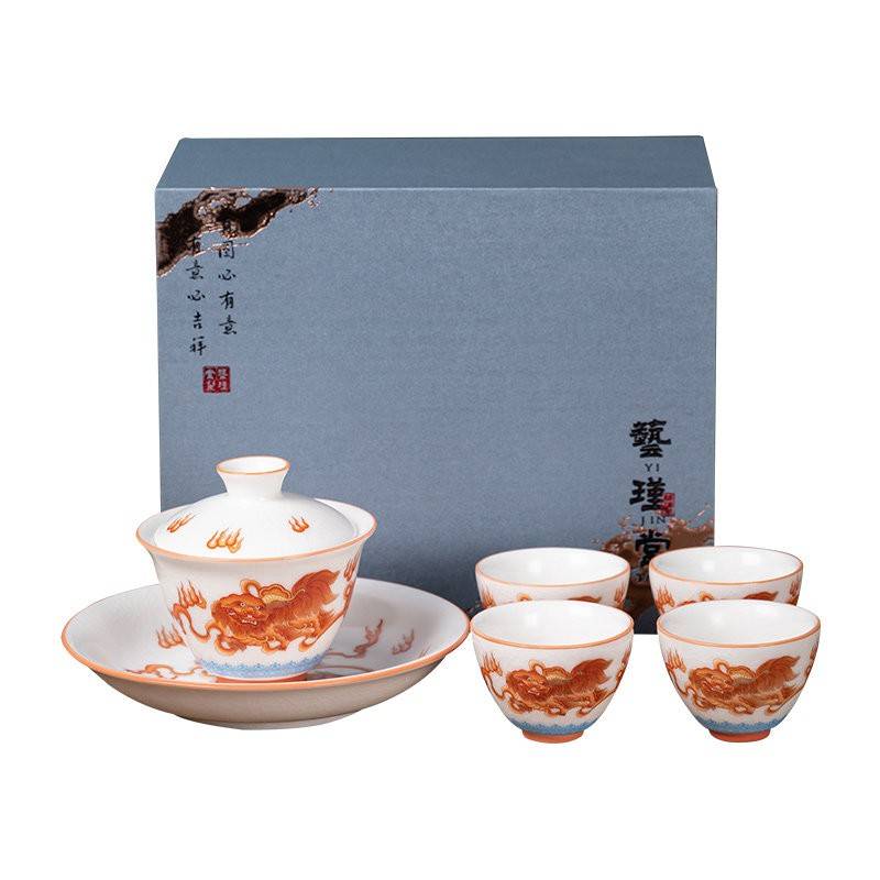 象牙白汝瓷茶具套装开片可养一壶四杯家用茶壶盖碗旅行便捷式套装