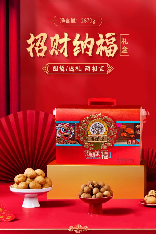 鲜品屋年货零食大礼包坚果礼盒节日送礼 2670g