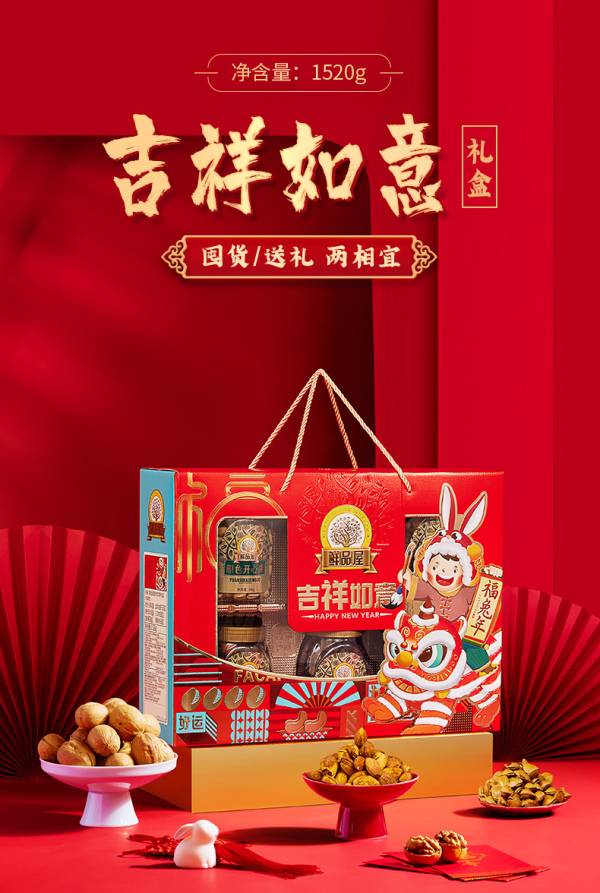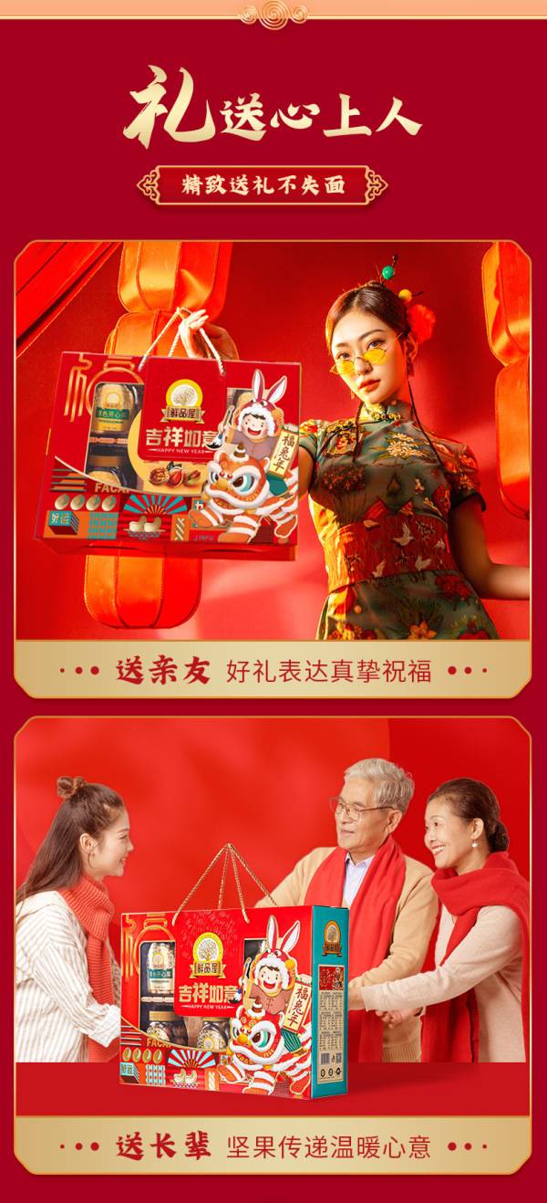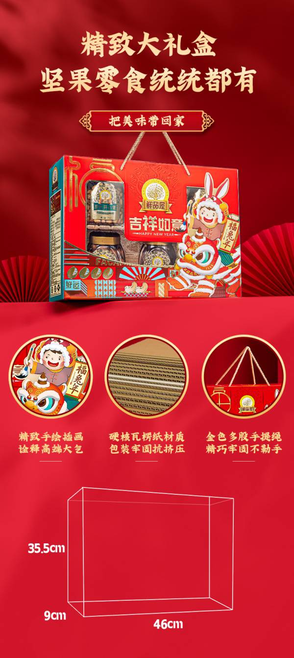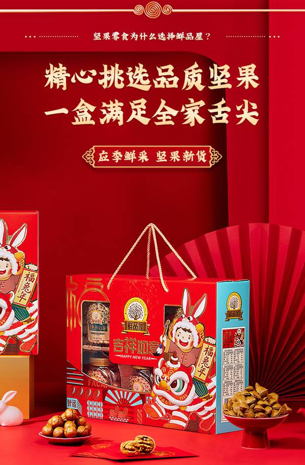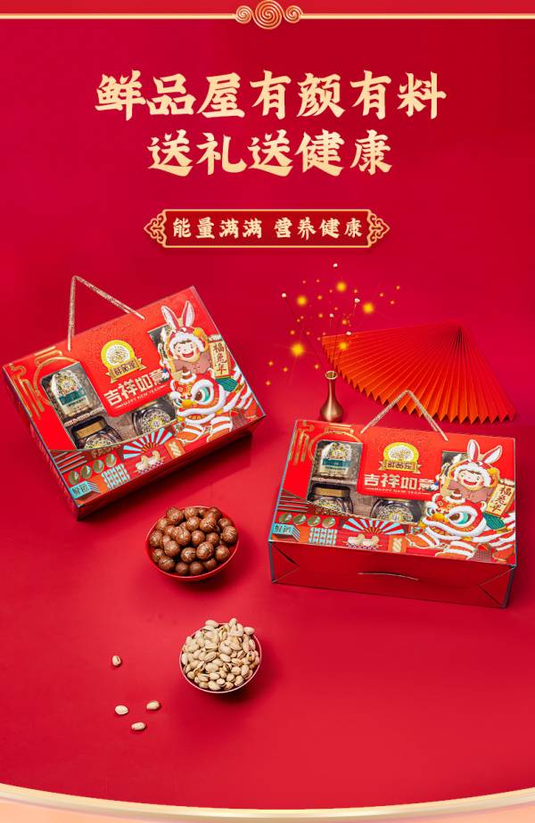 鲜品屋年货零食大礼包坚果礼盒节日送礼 吉祥如意1520g