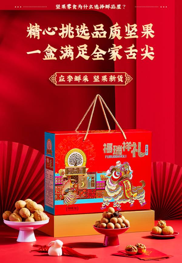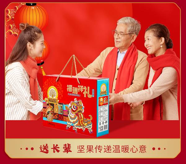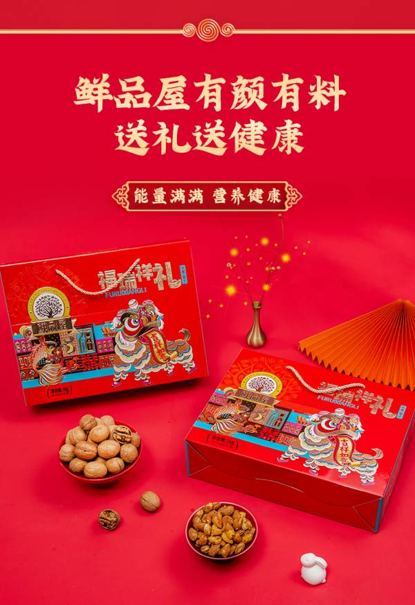鲜品屋年货零食大礼包坚果礼盒 福瑞祥礼1000g