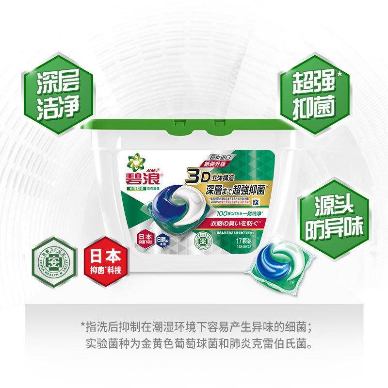 碧浪长效抑菌洗衣凝珠日晒般清新【17颗盒装】
