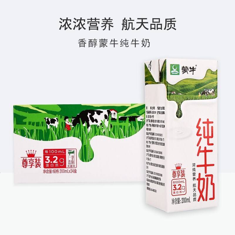 蒙牛 纯牛奶全脂灭菌乳苗条装 200ml×24包 礼盒装