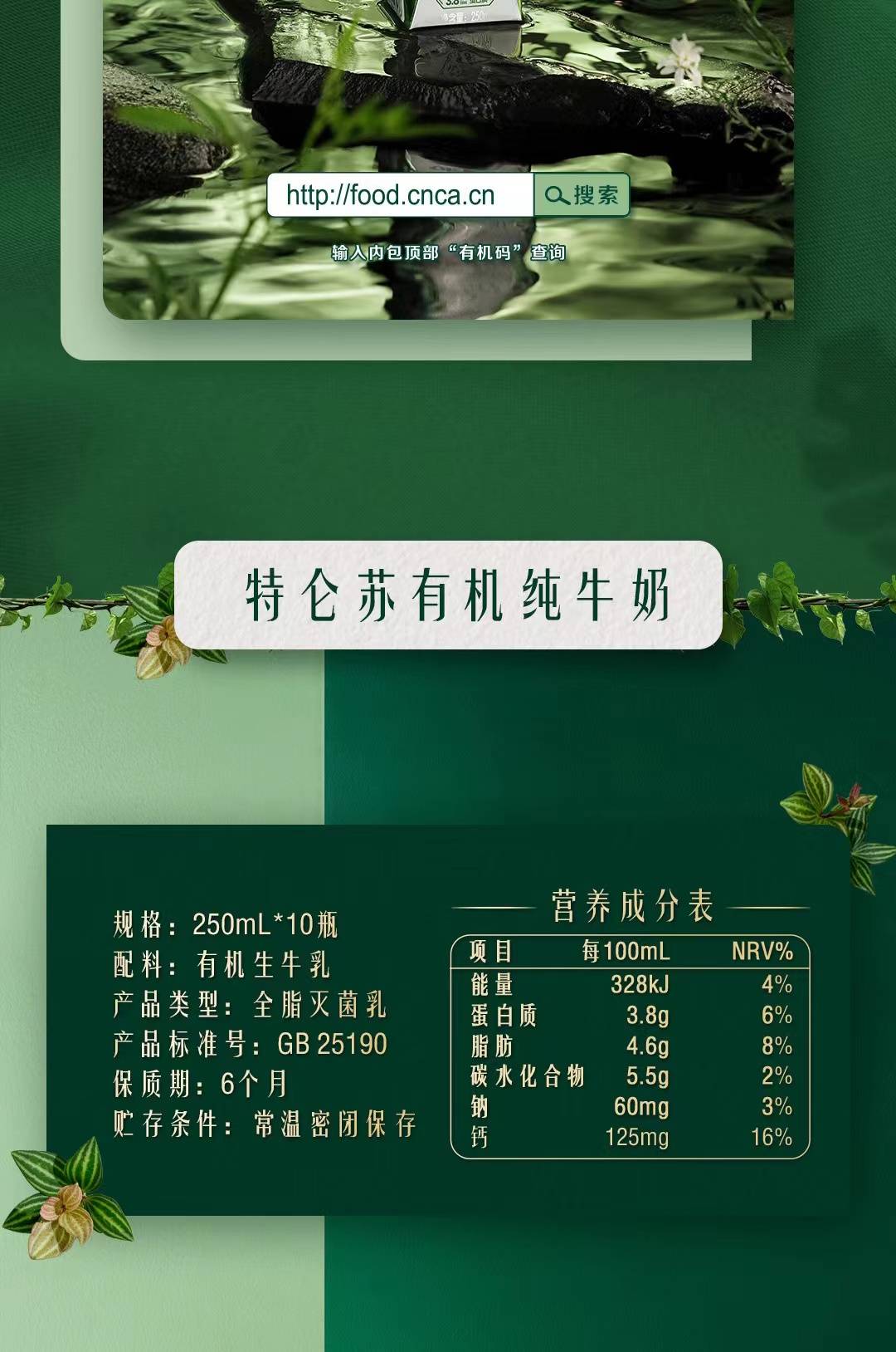 蒙牛特仑苏有机纯牛奶全脂灭菌乳利乐梦幻盖(3.8g乳蛋白)