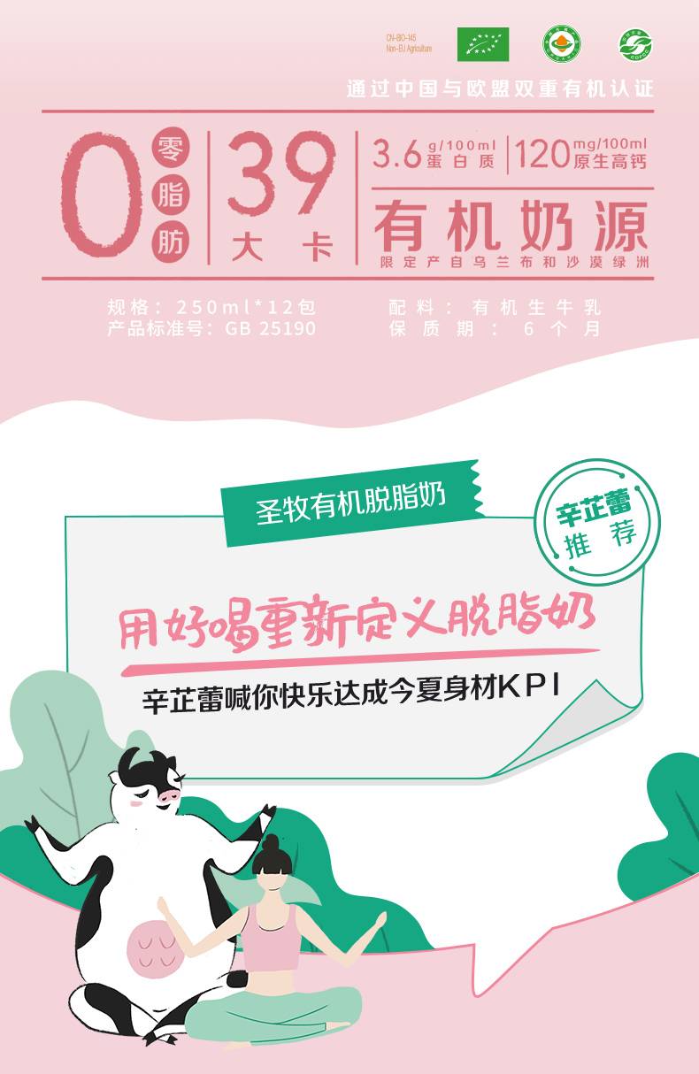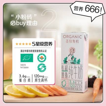蒙牛圣牧有机纯牛奶脱脂奶250ml*12盒0脂肪 3.6g蛋