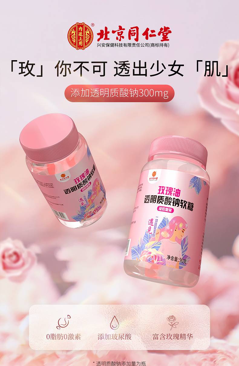 北京同仁堂-玫瑰油透明质酸钠软糖