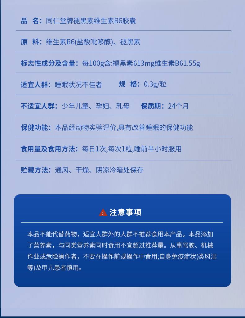 北京同仁堂-同仁堂牌褪黑素维生素B6胶囊18g(0.3g*6