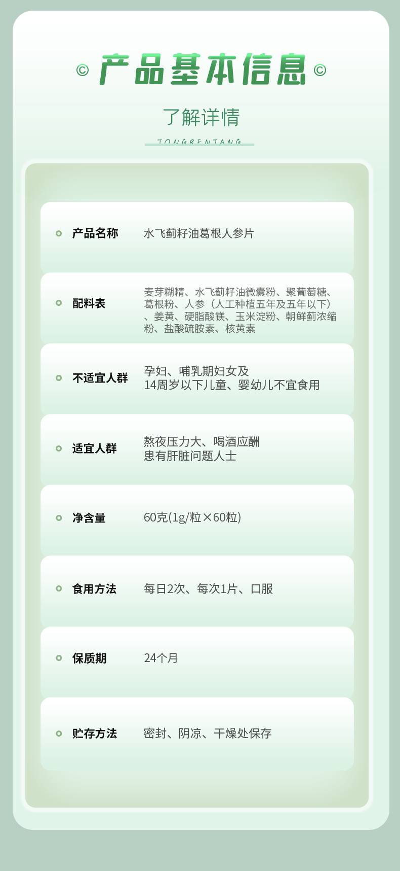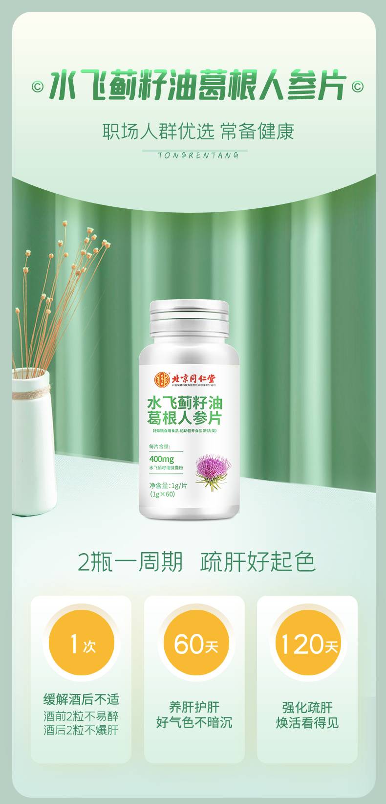 北京同仁堂-水飞蓟籽油葛根人参片60片